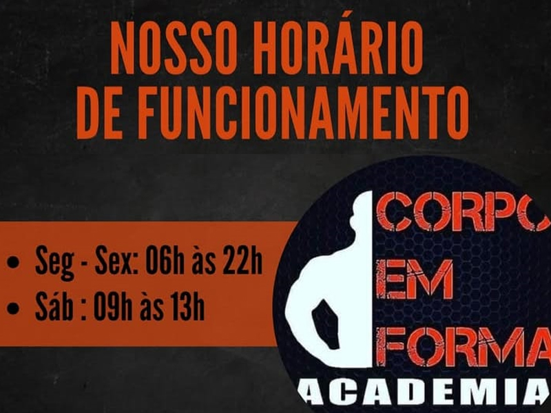 Desde o ano 2000 a acedemia Corpo em Forma vem ajudando a centenas de pessoas a conquistar mais qualidade de vida, saúde, bem-estar e condicionamento físico. Não perca tempo! Agende logo a sua aula experimental. Estaremos esperando por você.